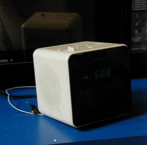 My family has had this Sony "Dream Machine" clock radio for years. It's a practical, almost feisty little cube. Throughout high school it dutifully sat in the bathroom, its turquoise LED showing the time to anyone who took the time to look, and tinnily playing the Cleveland Oldies station for me and the NPR station for my mom. (Since then, I've realized that my mom had much better taste in radio programming.)
